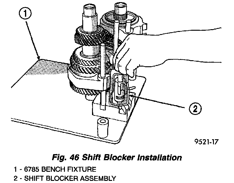 3. Install shift blocker assembly into bench fixture (Fig. 46).