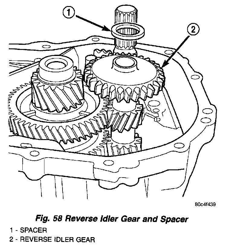18. Install reverse idler gear and spacer as shown in (Fig. 58).