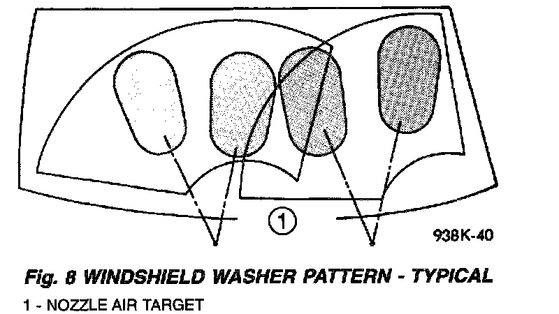 NOTE: Aim the spray towards the top of the pattern area. When proceeding down the road at speed, the spray will hit the windshield lower than when the vehicle is at rest.