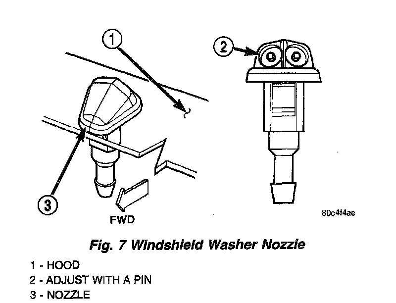 Each nozzle emits two streams into the wiper pattern. If the nozzle performance is unsatisfactory they can be adjusted.