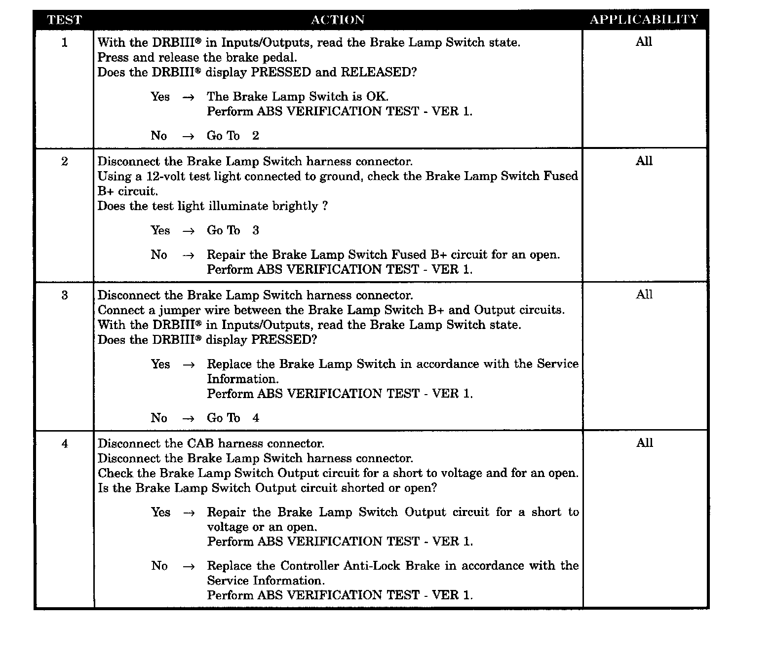 BRAKE LAMP SWITCH OUTPUT CIRCUIT SHORT OR OPEN