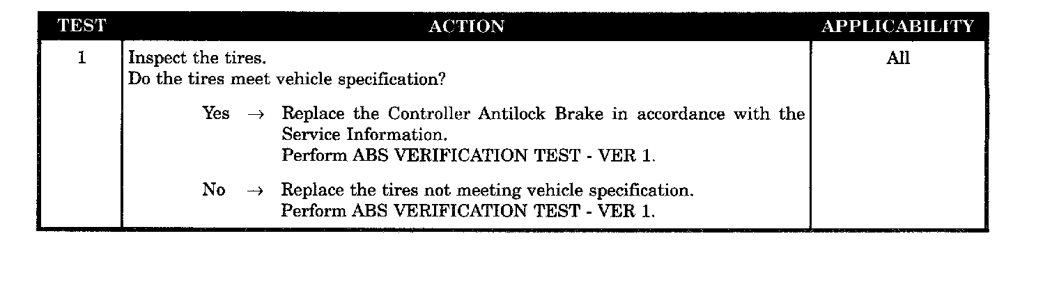 Set Condition: When the CAB detects an unexpected wheel speed condition caused by a tire size that does not meet vehicle specification.