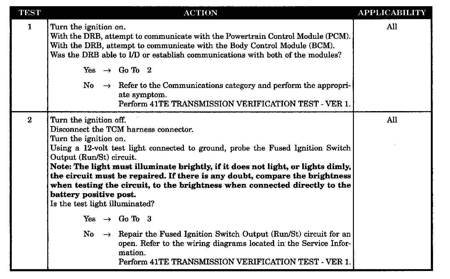 BUS +/- SIGNALS OPEN OR NO RESPONSE FROM TRANSMISSION CONTROL MODULE