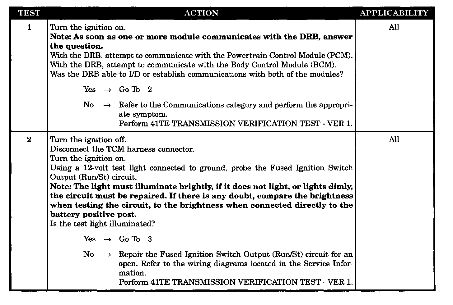 NO RESPONSE FROM TRANSMISSION CONTROL MODULE/BUS +/- SIGNALS OPEN