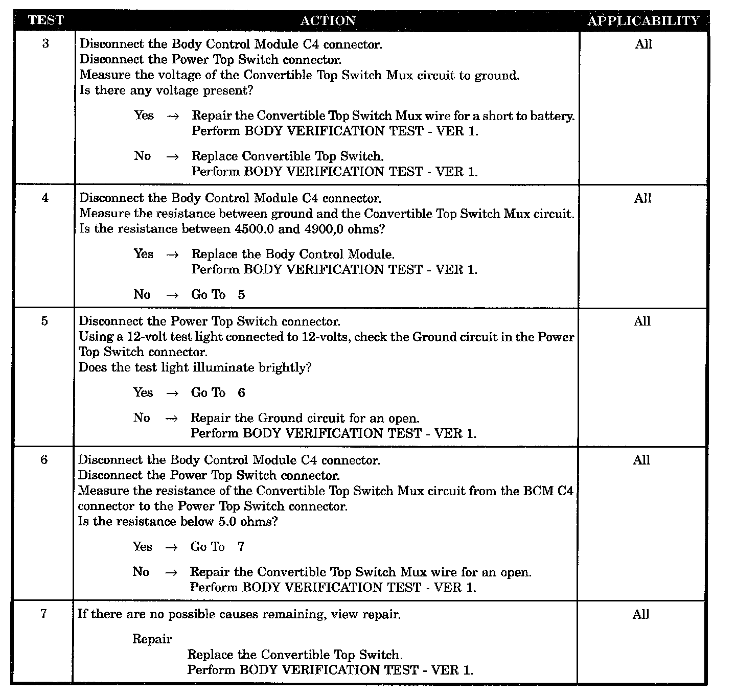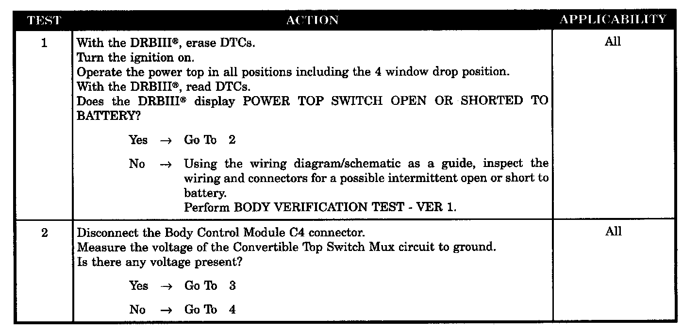 POWER TOP SWITCH OPEN OR SHORTED TO BATTERY