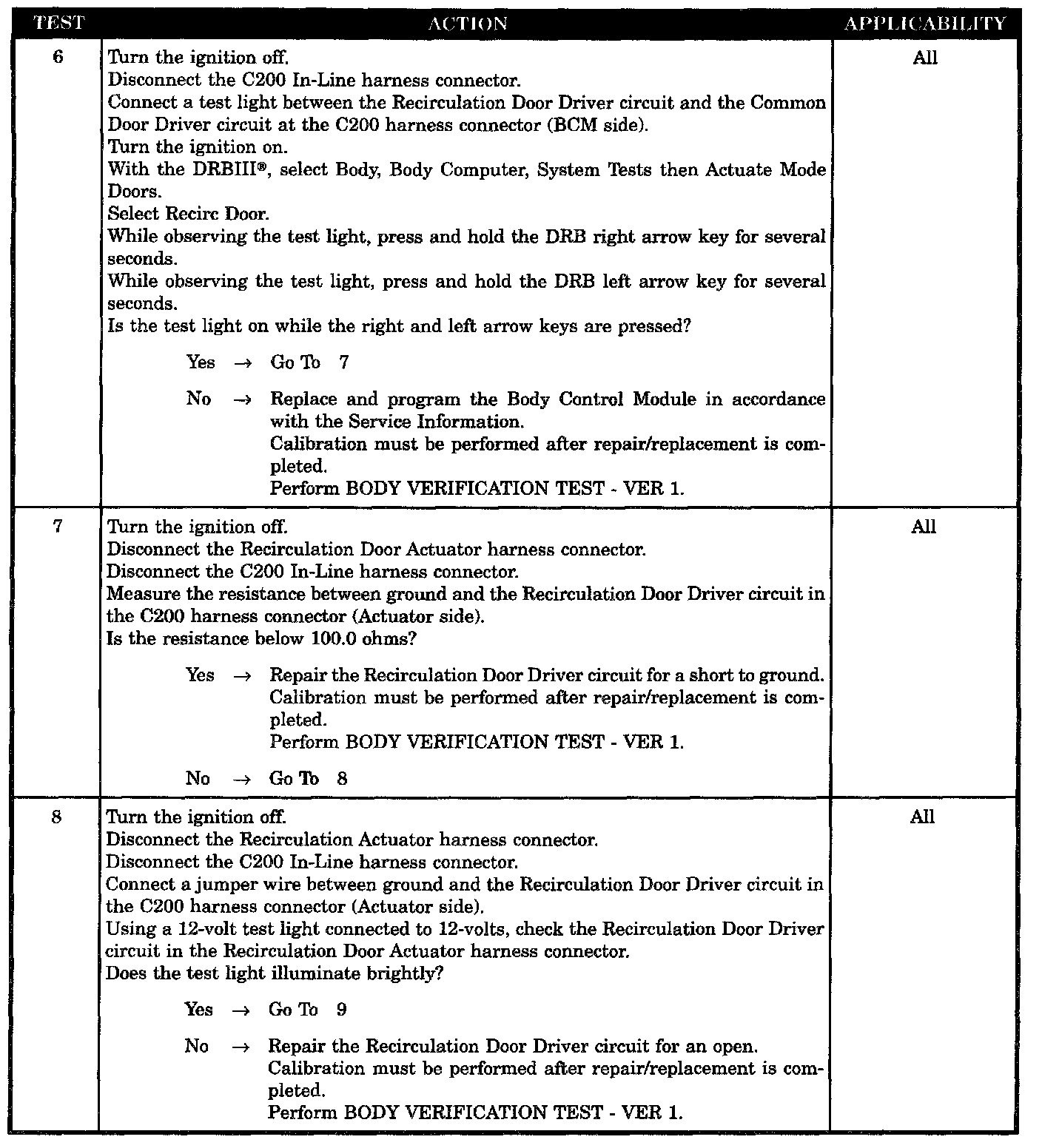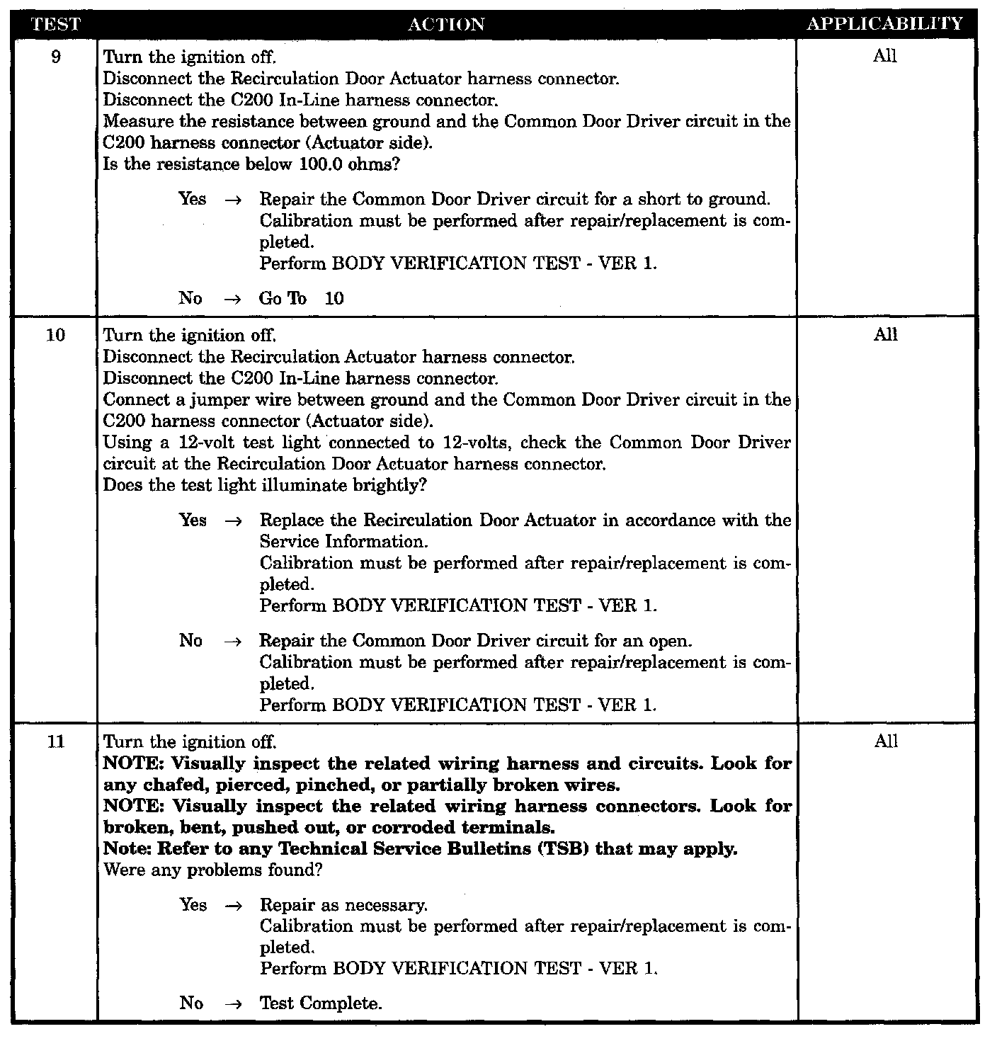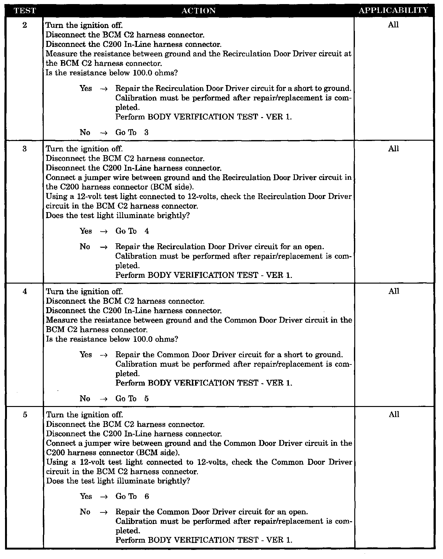 - Recirculation door driver circuit shorted to ground between C200 and the actuator