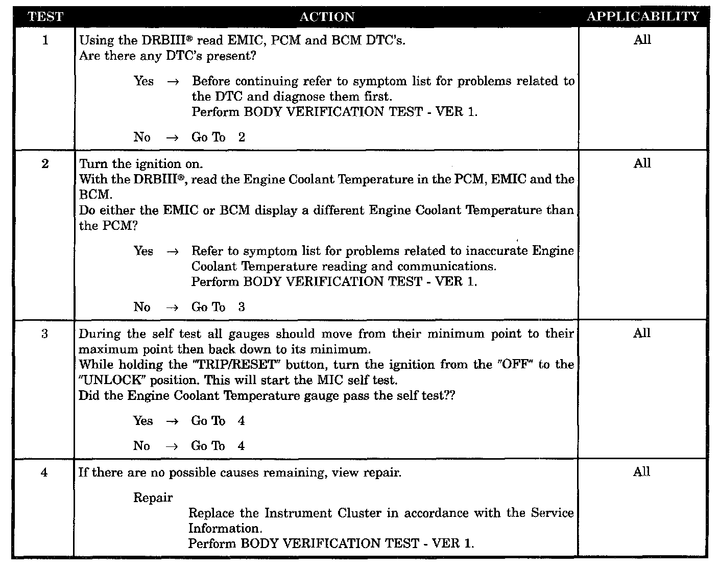 ENGINE COOLANT TEMPERATURE GAUGE NOT OPERATING PROPERLY