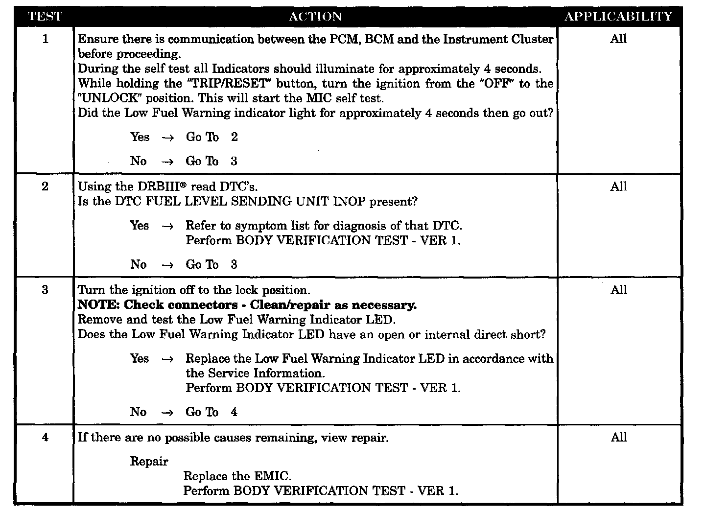 LOW FUEL WARNING INDICATOR NOT OPERATING PROPERLY
