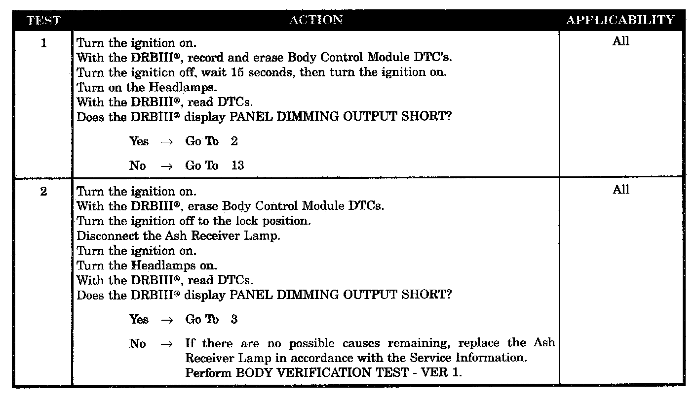 - Ash receiver lamp dimming circuit short to ground