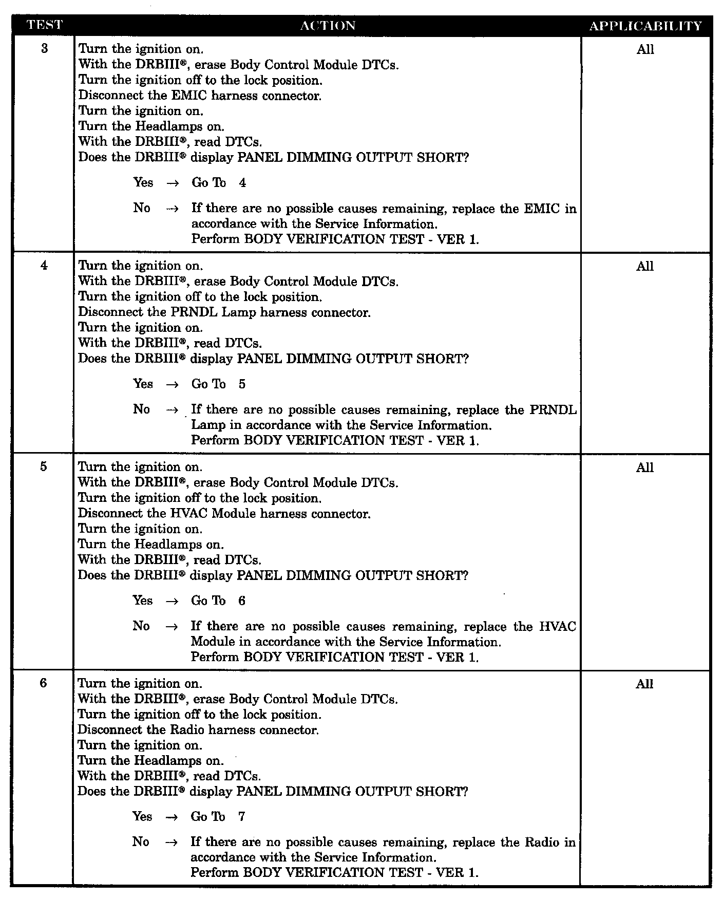 - Radio dimming circuit short to ground