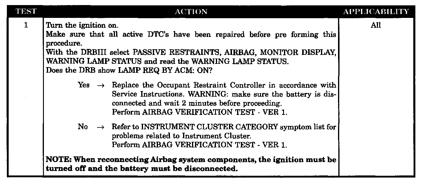 AIRBAG WARNING INDICATOR ON WITHOUT TROUBLE CODES