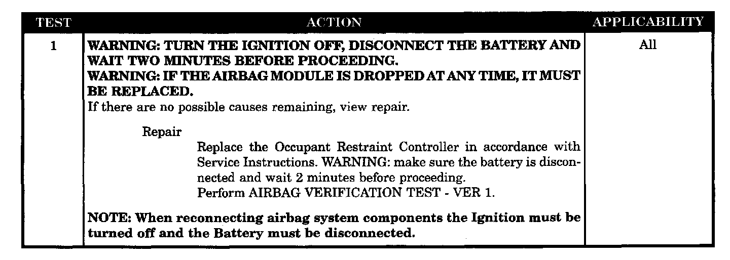 When the ignition is ON, the ORC on board diagnostics continuously performs internal circuit tests.