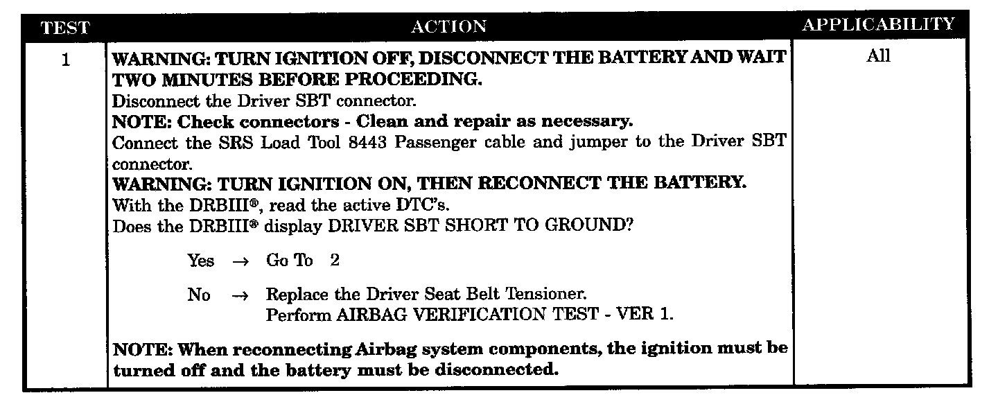 - Driver SBT line 1 short to ground