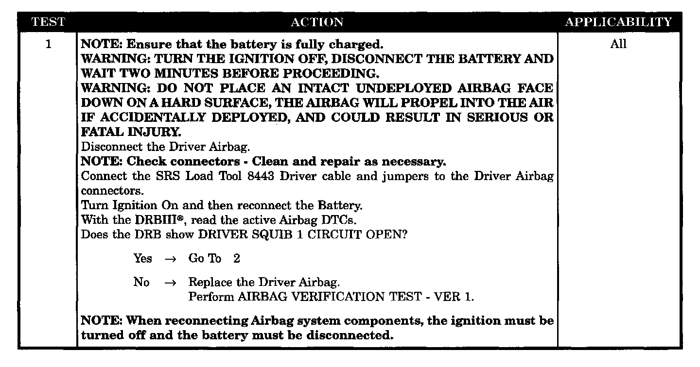- Driver squib 1 line 1 circuit open
