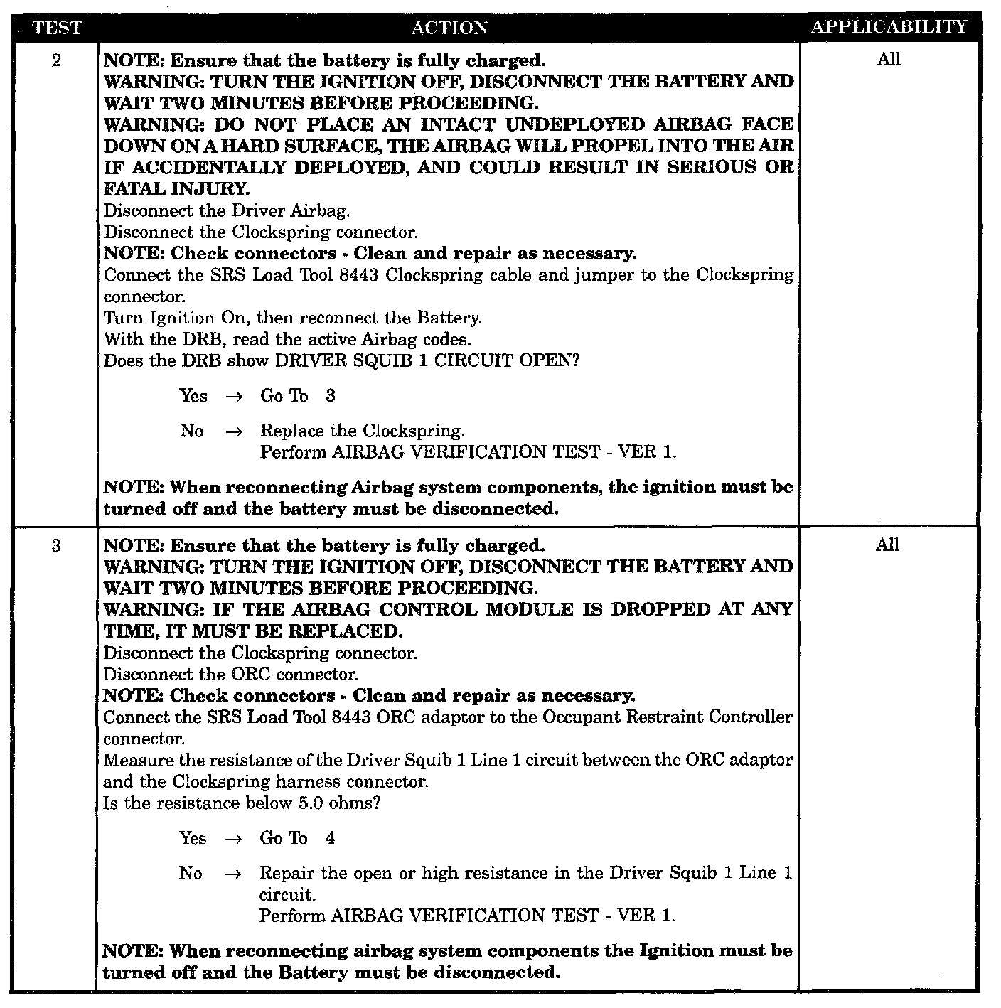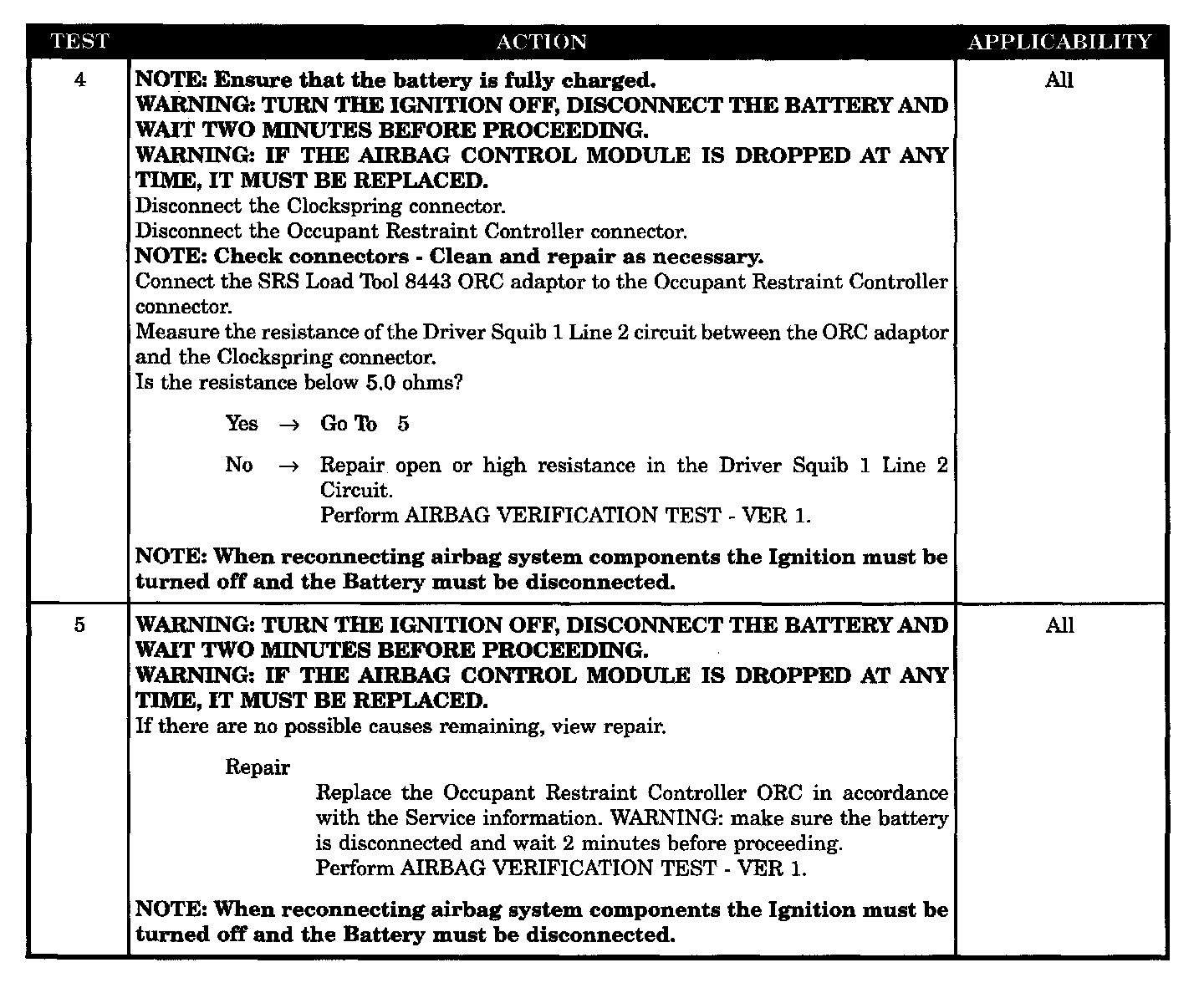 When the ignition is ON, the ORC monitors the resistance of the Driver Squib 1 circuits.