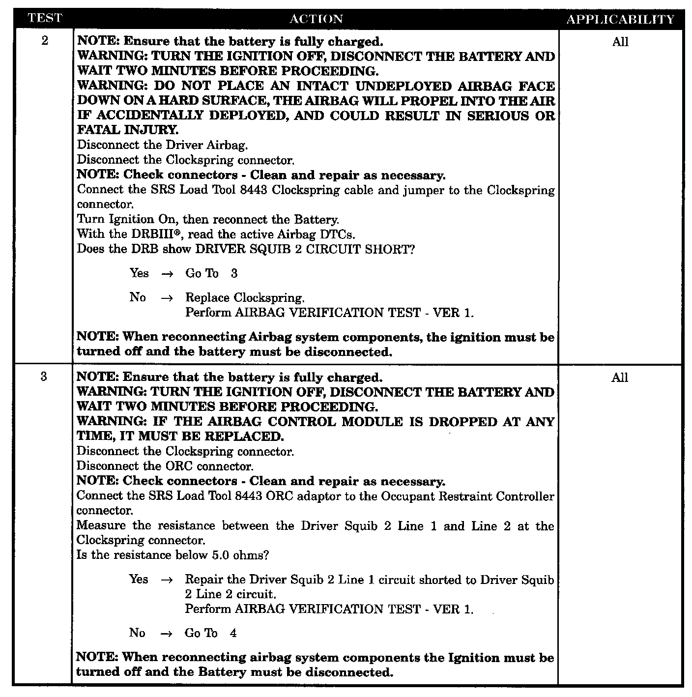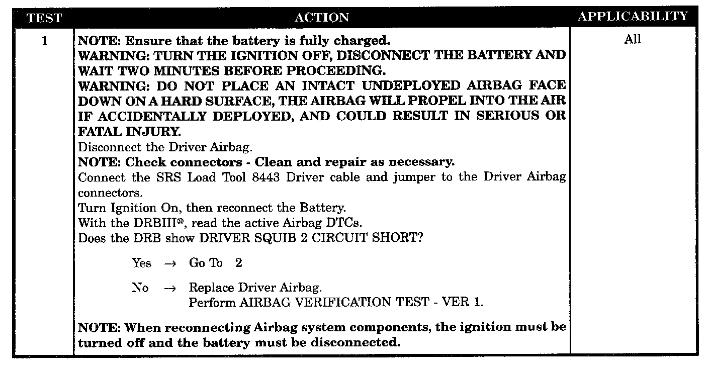 - Clockspring, driver squib 2 circuit short