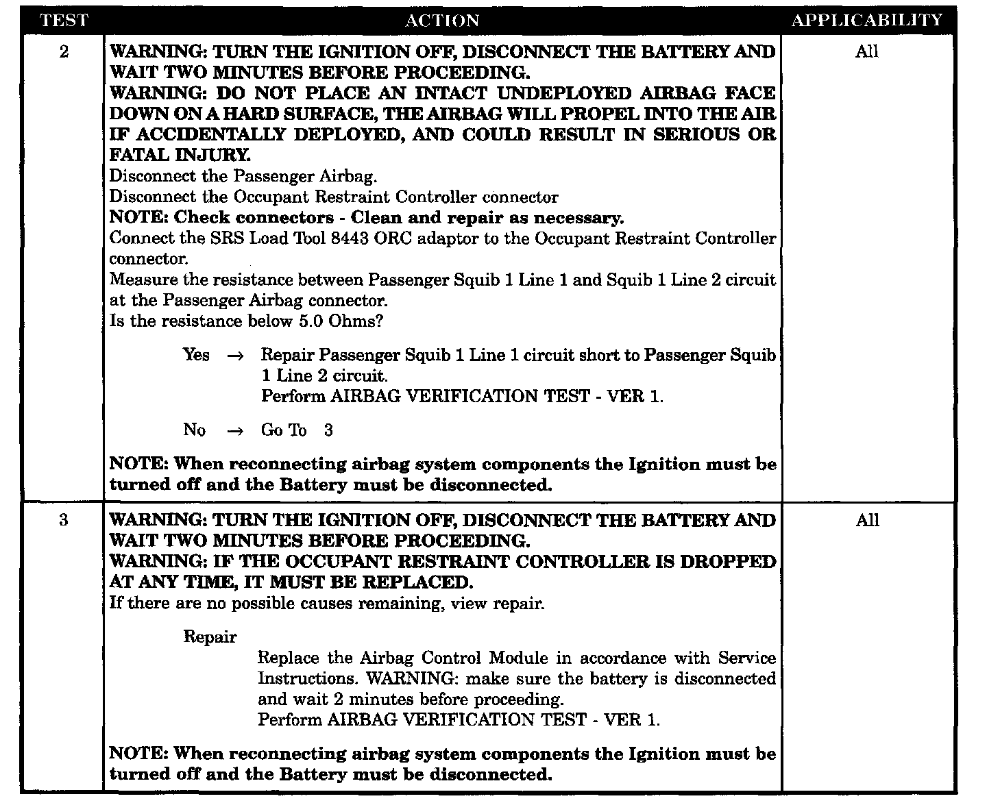 When the ignition is ON, the ORC monitors the resistance of the Passenger Squib 1 circuits.