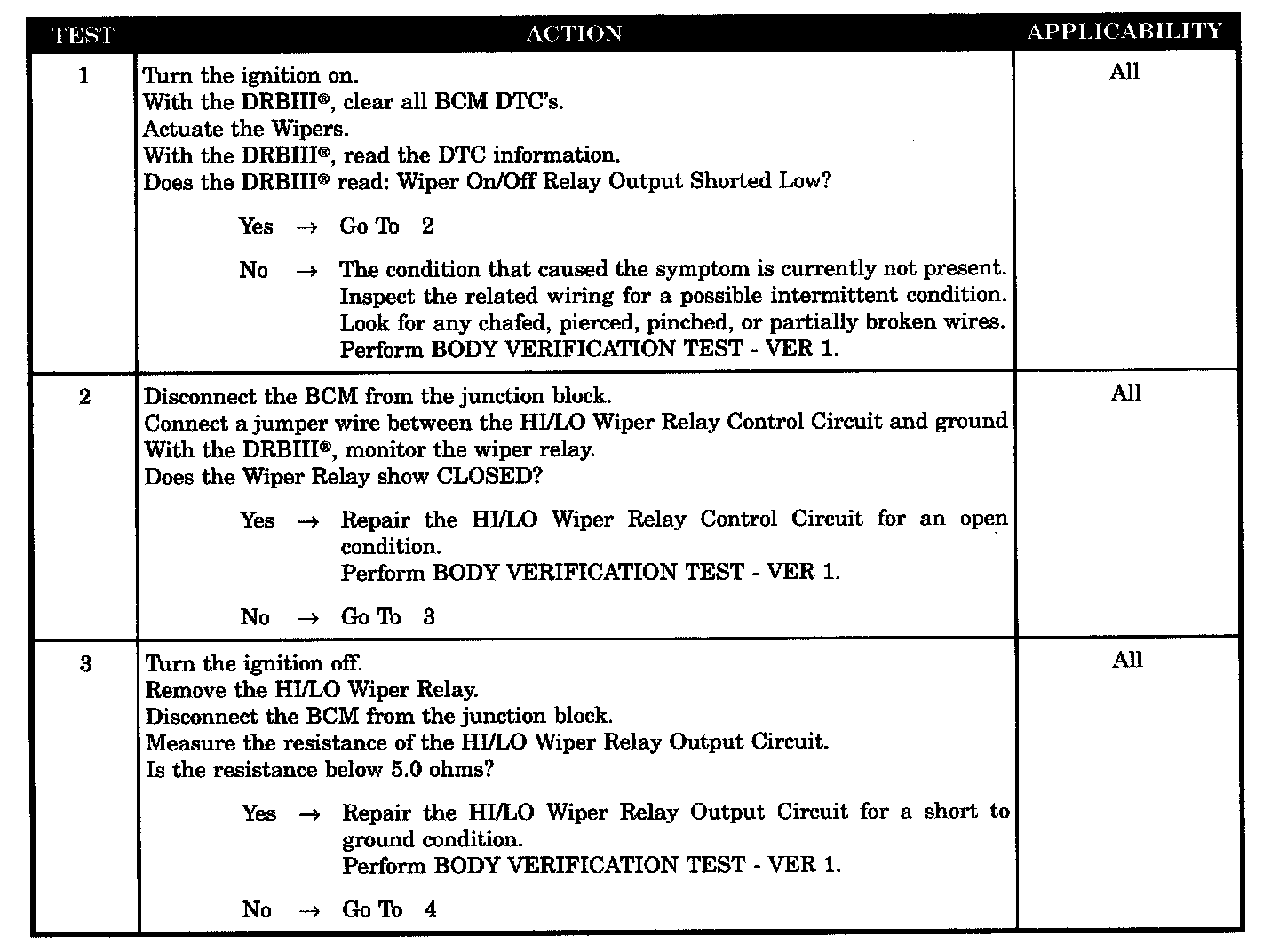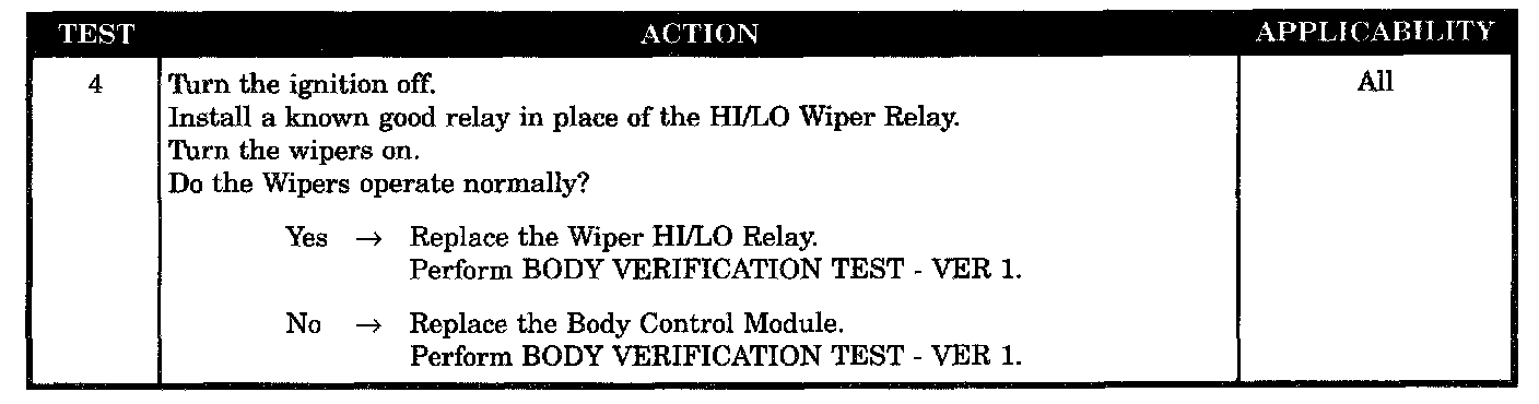 WIPER ON/OFF RELAY OUTPUT SHORTED LOW