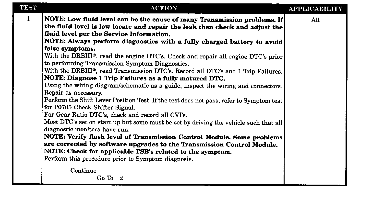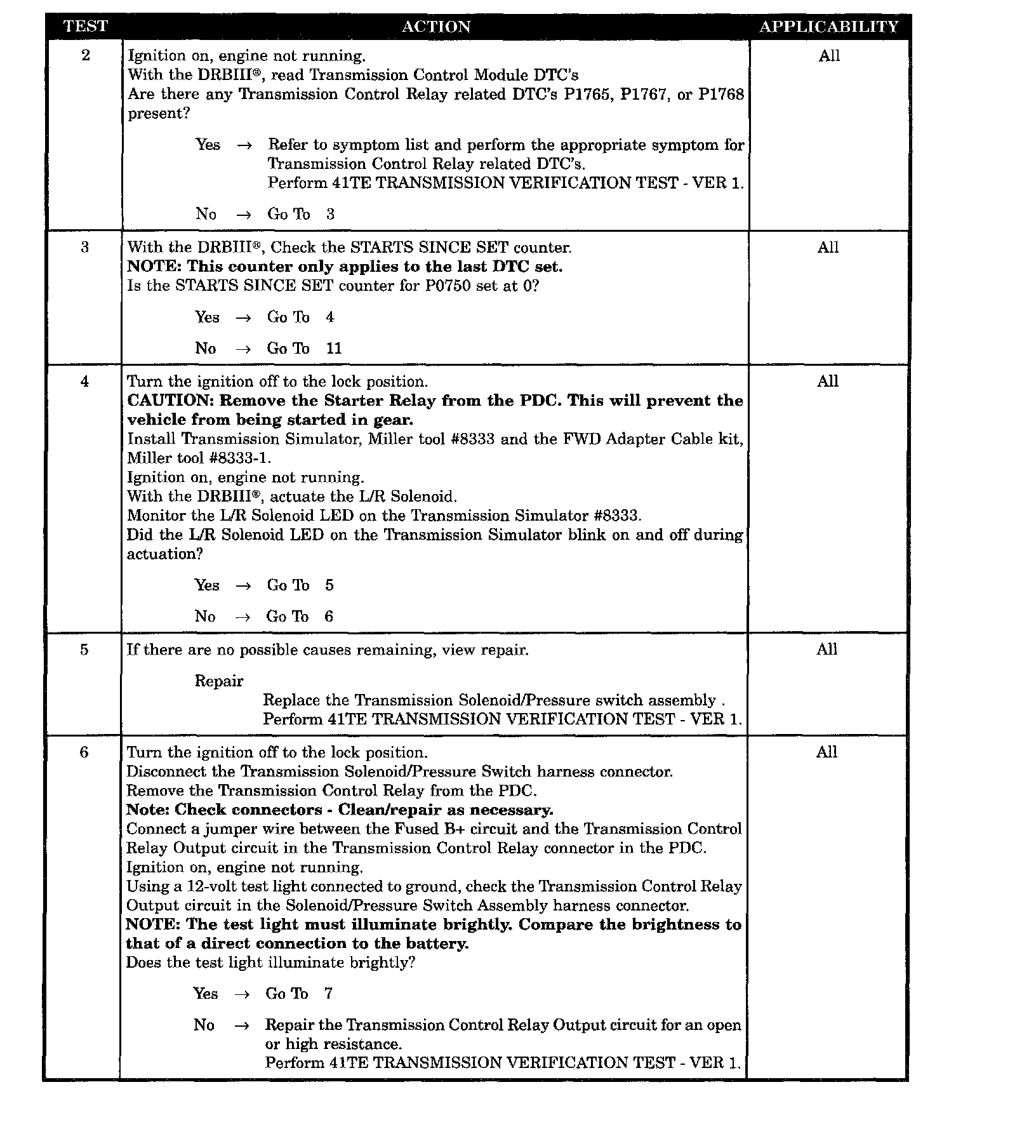 When Monitored: Initially at power-up, then every 10 seconds thereafter. The solenoids will also be tested immediately after a Gear Ratio or Pressure Switch error is detected.