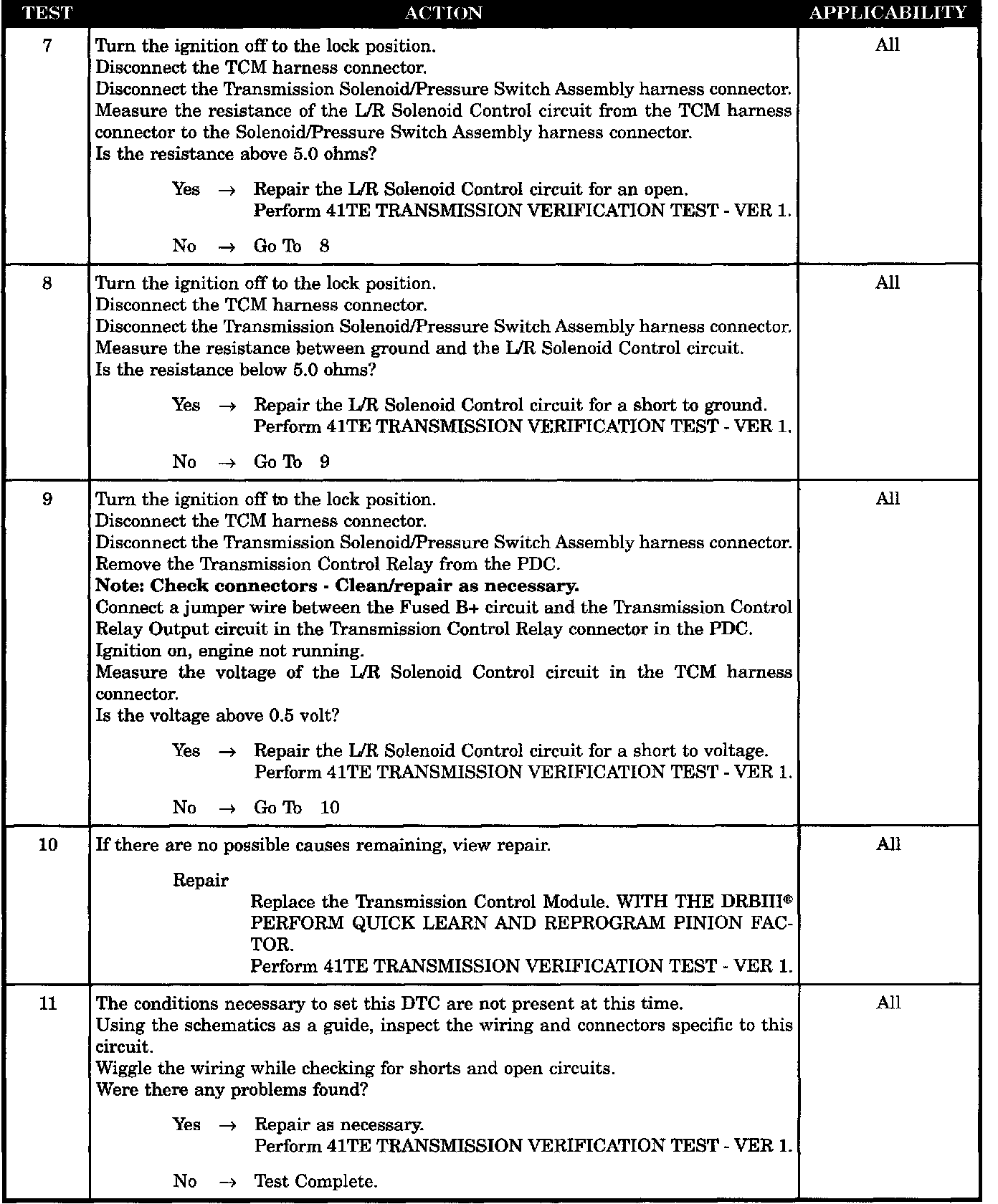 L/R SOLENOID CONTROL CIRCUIT SHORT TO GROUND