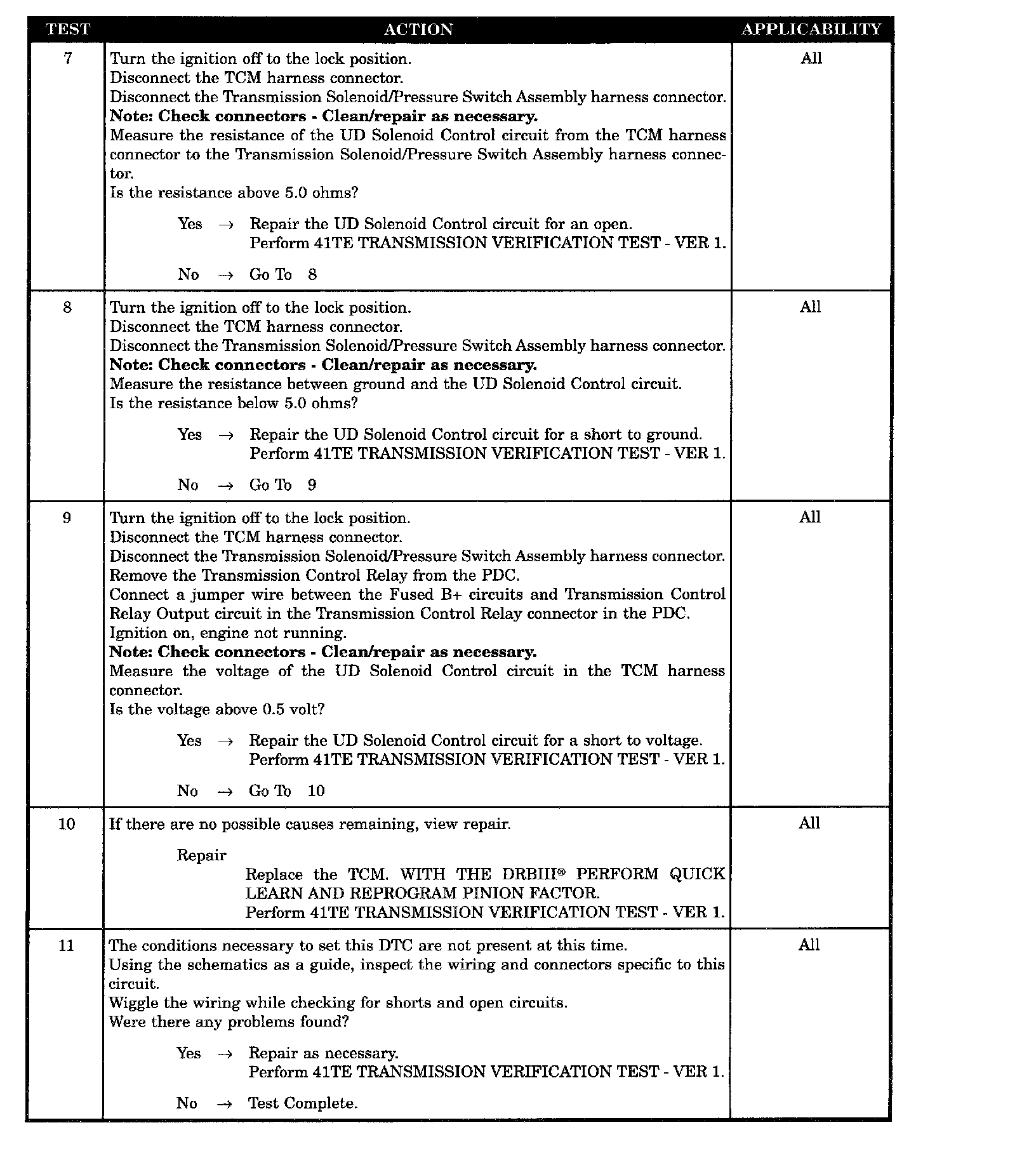 UD SOLENOID CONTROL CIRCUIT SHORT TO GROUND