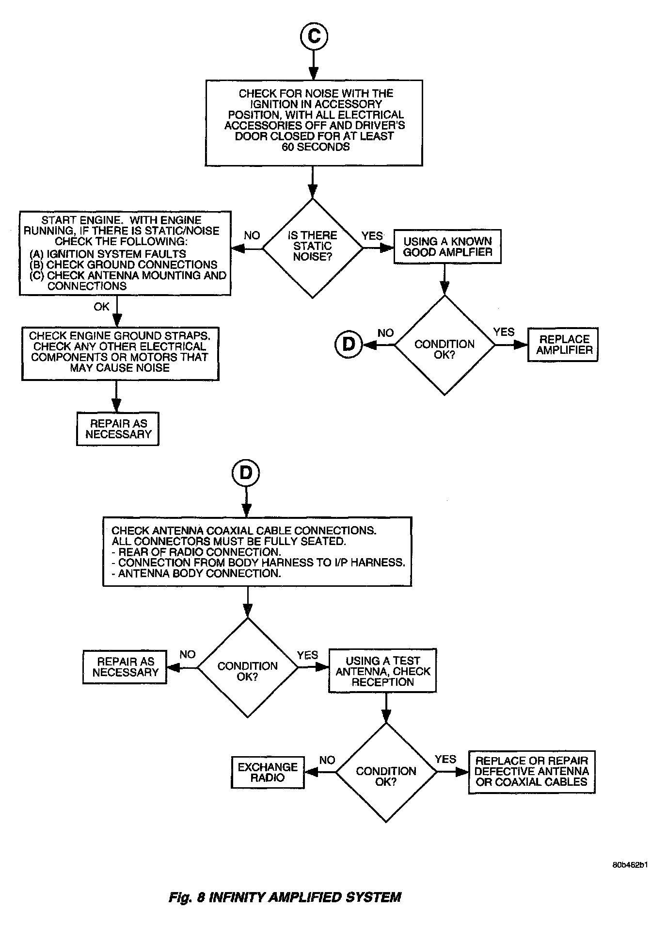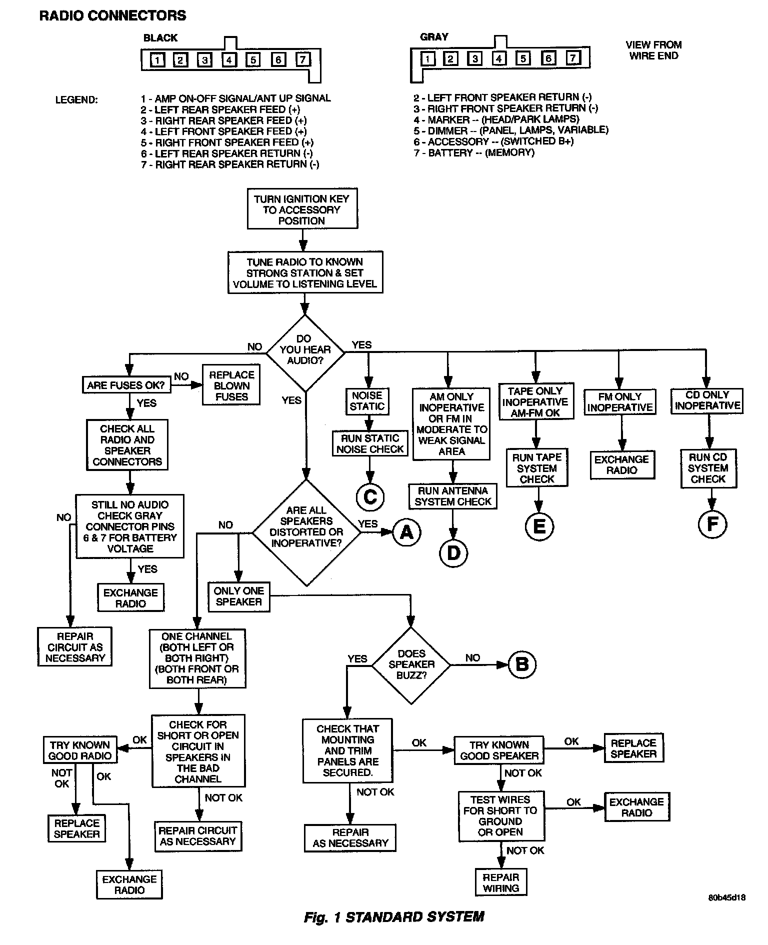 Verify, the radio wire harness is properly connected before starting normal diagnosis and repair procedures. Refer to Audio Diagnostic Tables,,, for the base system and,,,,, for the Infinity System and/or Wiring Diagrams.