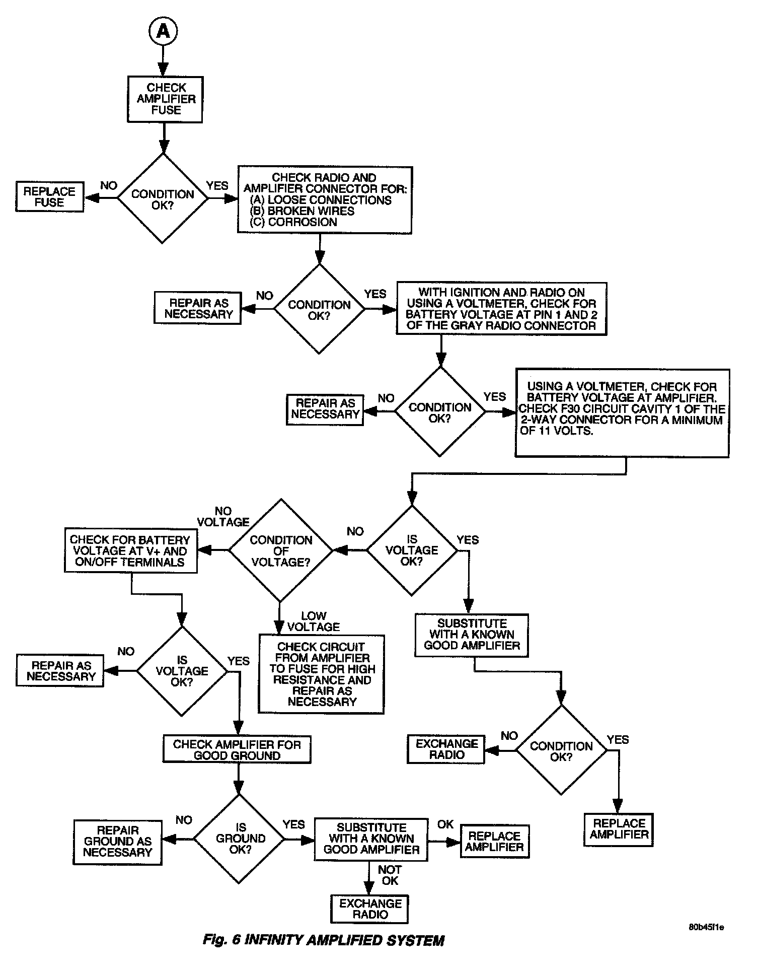 - Check amplifier for battery voltage, and ON/OFF voltage.