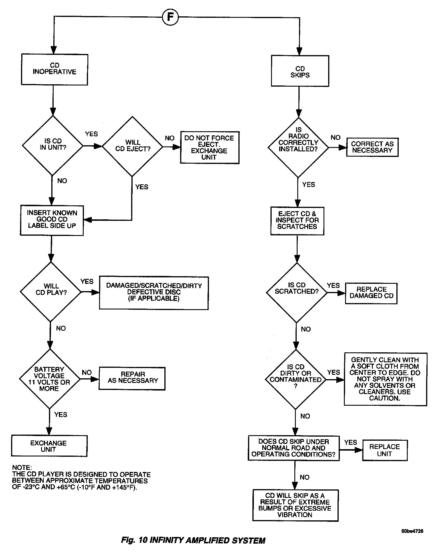 AUDIO SYSTEMCAUTION: The CD player will only operate between approximate temperatures of -23 °C and +65 °C (-10 °F and +145 °F).