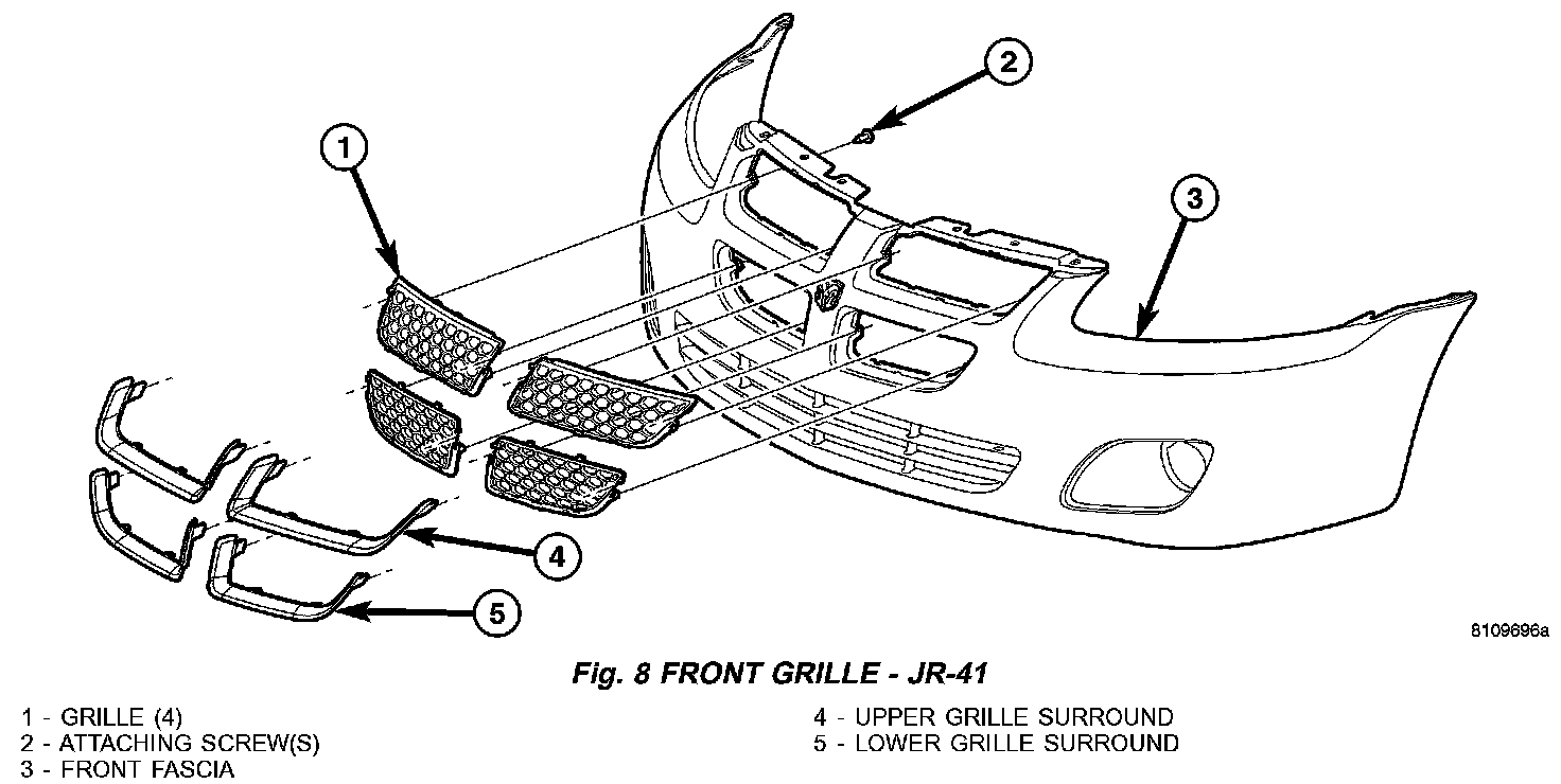 2. Unsnap upper and lower grille surround(s). Using a trim stick if necessary (Fig. 8).