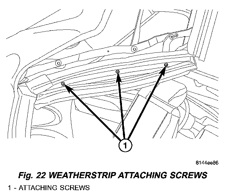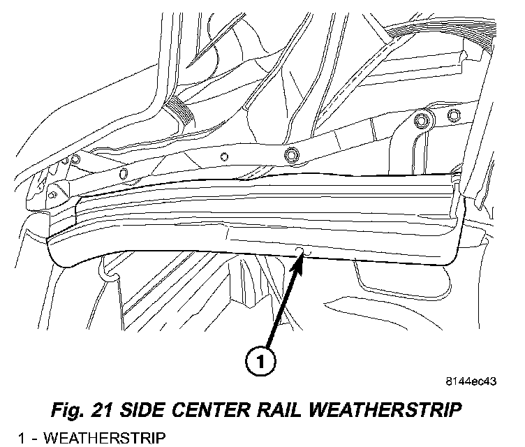 10. Remove weatherstrip for side glass on the center side rail (Fig. 21), and weatherstrip retainer (Fig. 22).