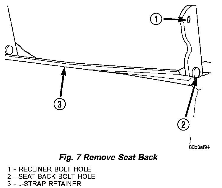 3. Remove bolts attaching recliner to seat back cushion frame (Fig. 6).