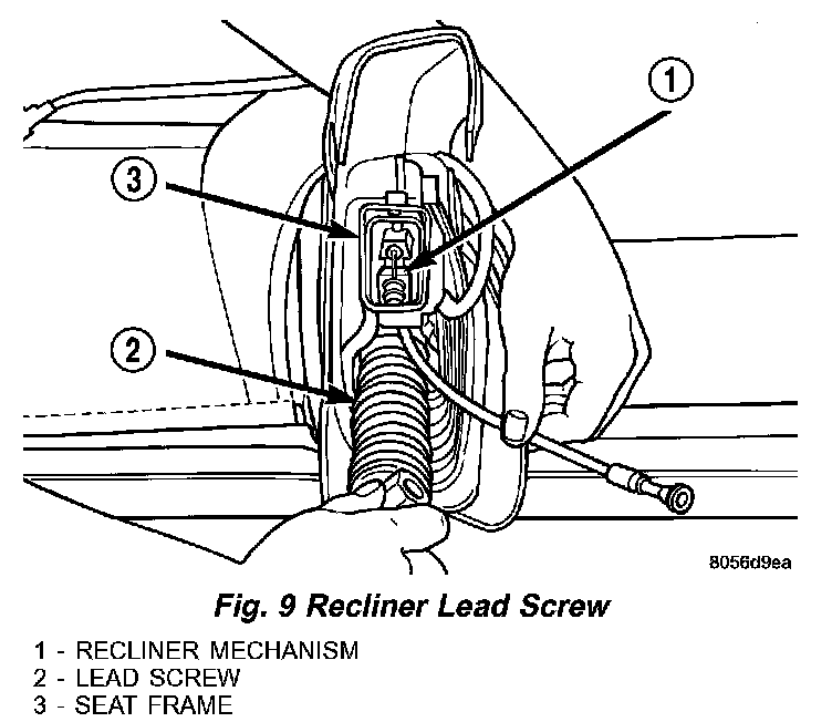 15. Unscrew lead screw from recliner mechanism (Fig. 9).
