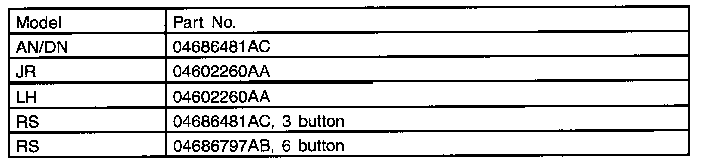 2. Only the transmitter part number specified for the model year should be used.