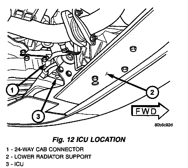 DESCRIPTIONThe Hydraulic Control Unit (HCU) and the Controller Antilock Brake (CAB) used with this antilock brake system are combined (integrated) into one unit, which is called the Integrated Control Unit (ICU). The ICU is located below the air cleaner housing on the lower radiator support.