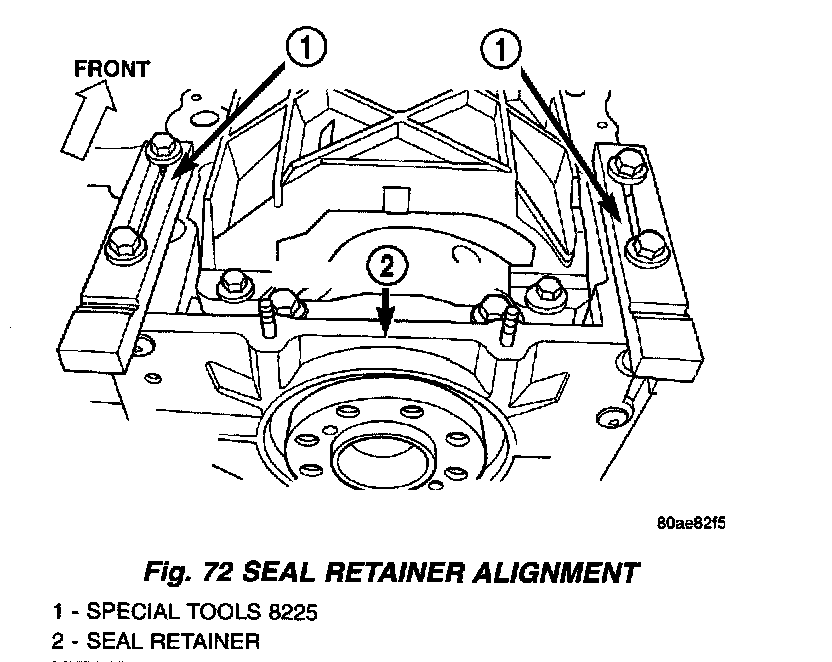 4. While applying firm pressure to the seal retainer against Special Tools 8225 (Fig. 72), tighten seal retainer screws to 12 Nm (105 in. lbs.).