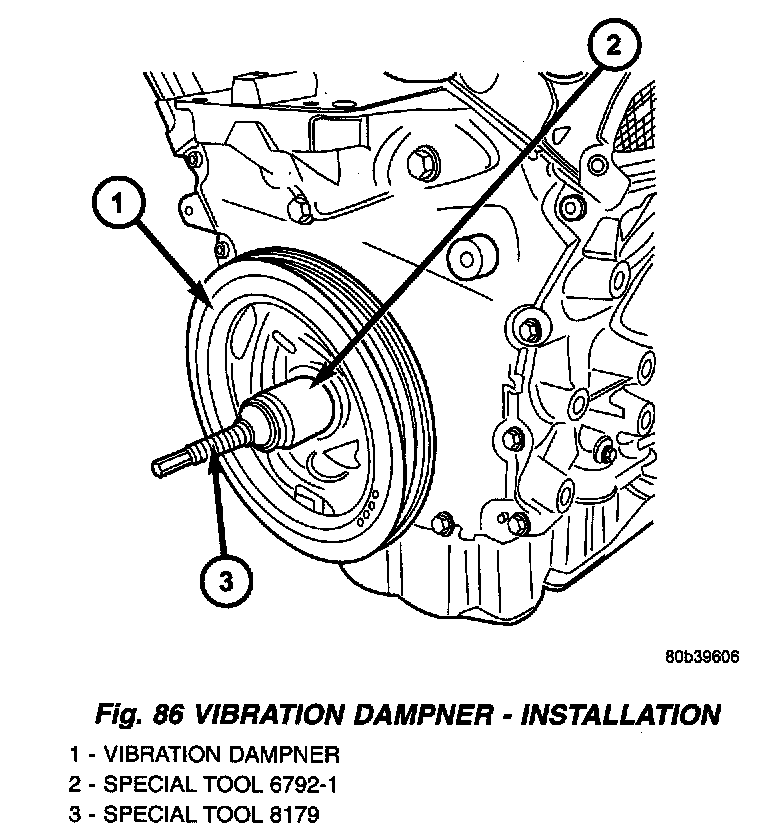 1. Install damper using Special Tools 8179 Screw, with Nut and Thrust Bearing from 6792, and 6792-1 Installer (Fig. 86).