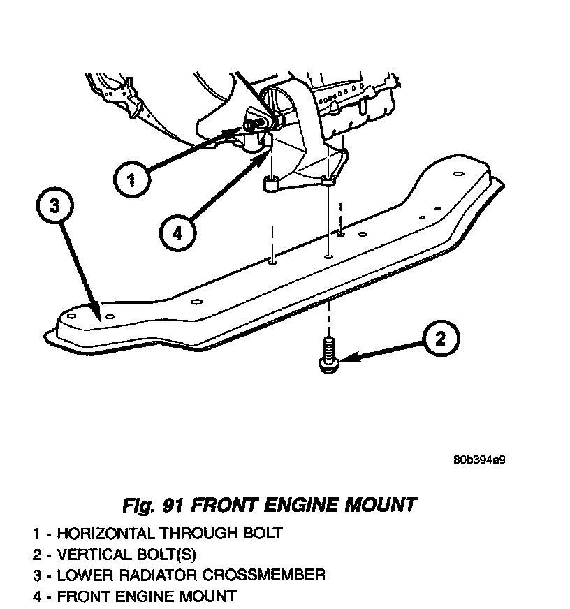 2. Remove front mount to bracket horizontal through bolt (Fig. 91).