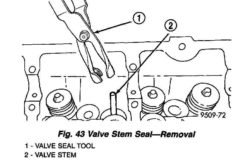 2. Remove valve stem seal by using a valve seal tool (Fig. 43).