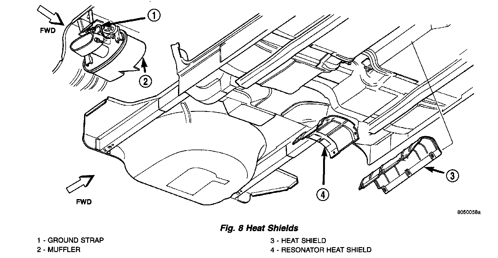 DESCRIPTIONThe exhaust system heat shields are attached to the under body of the vehicle.