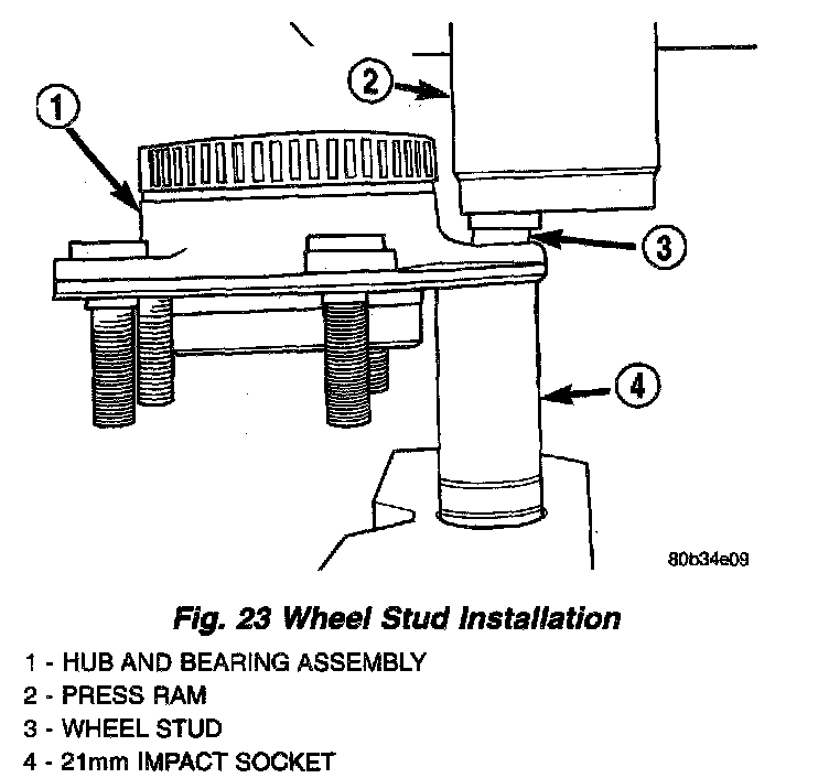 CAUTION: Take care to keep hub and bearing assembly from falling during stud removal. Damage to the hub and bearing could result.