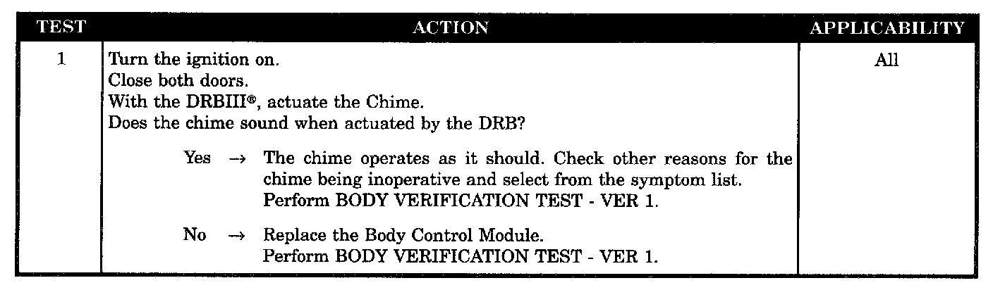 chime inoperative