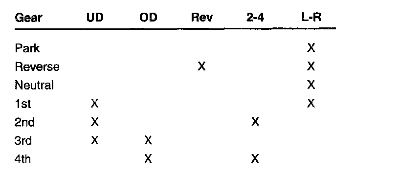 Theory of operation: The solenoid switch valve (SSV) controls the direction of the transmission fluid when the L-R/TCC solenoid is energized. SSV will be in the downshifted position in 1st gear, thus directing the fluid to the L-R clutch circuits. In 2nd, 3rd, and 4th, the SSV will be in the upshifted position and directs the fluid into the torque converter clutch (TCC).