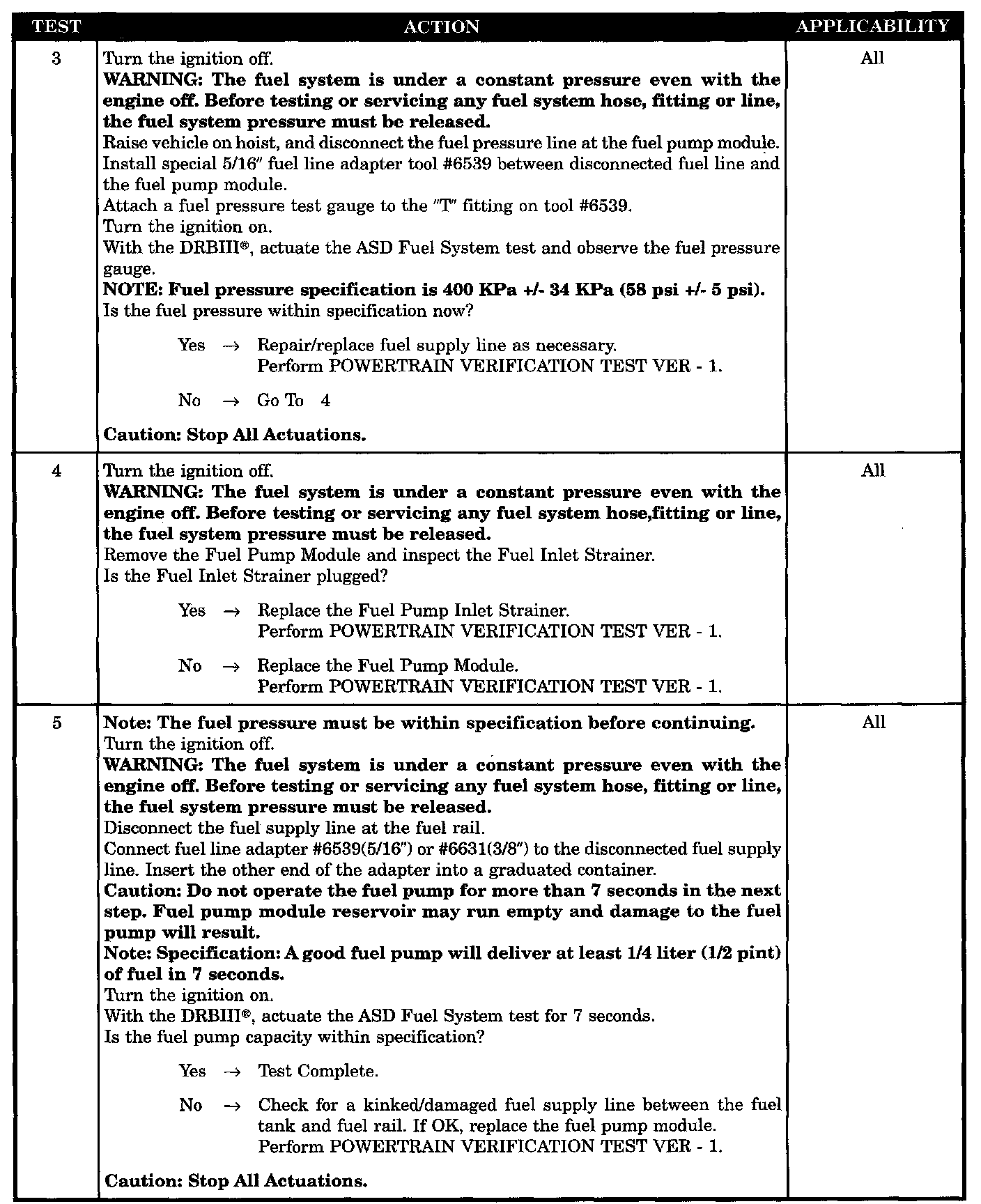 - Fuel Pump Capacity (Volume) Out Of Specs