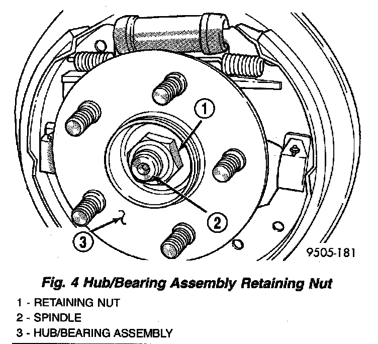 3. Remove rear brake drum from rear hub and bearing assembly.