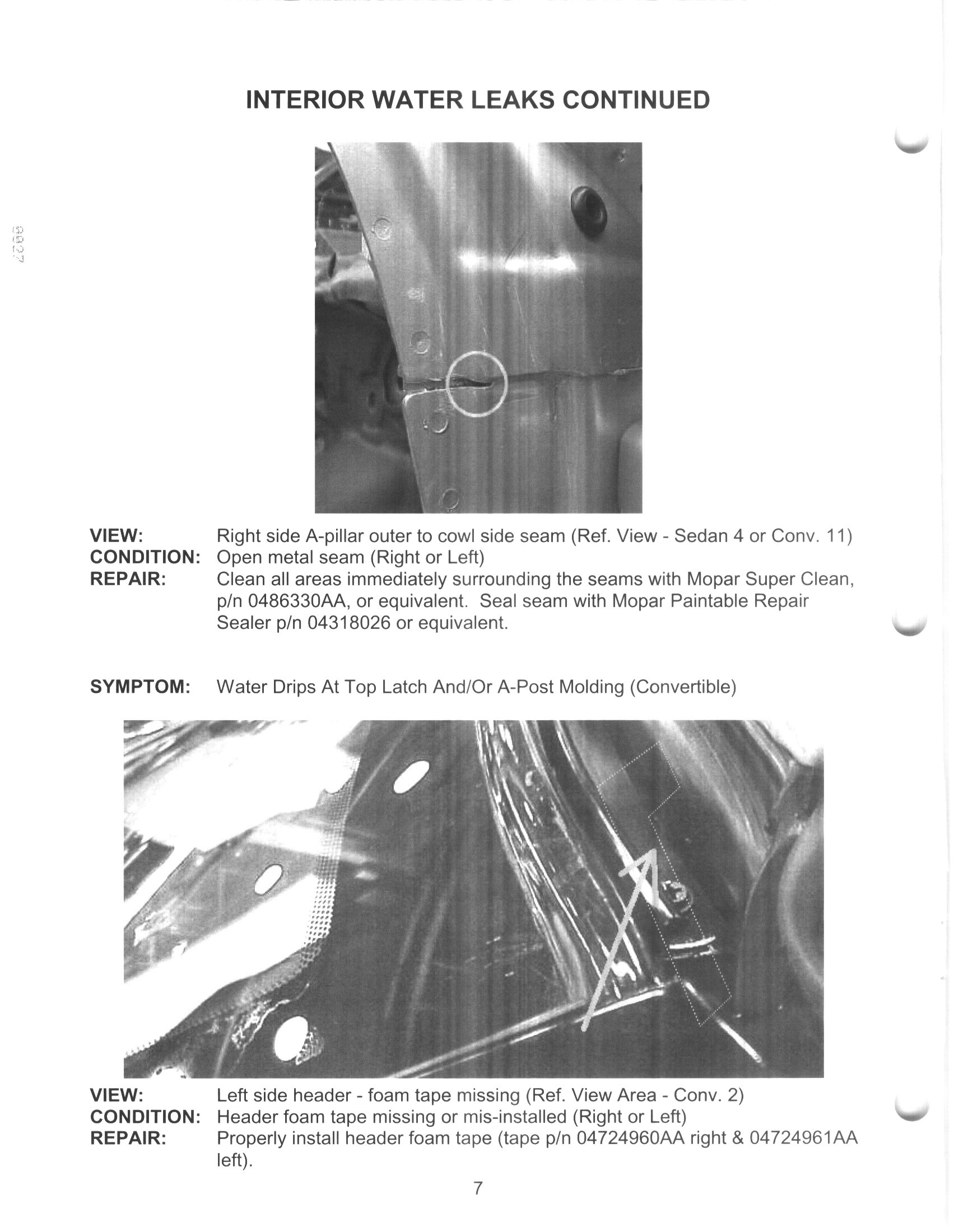Body and Frame - Water Leak Information Manual