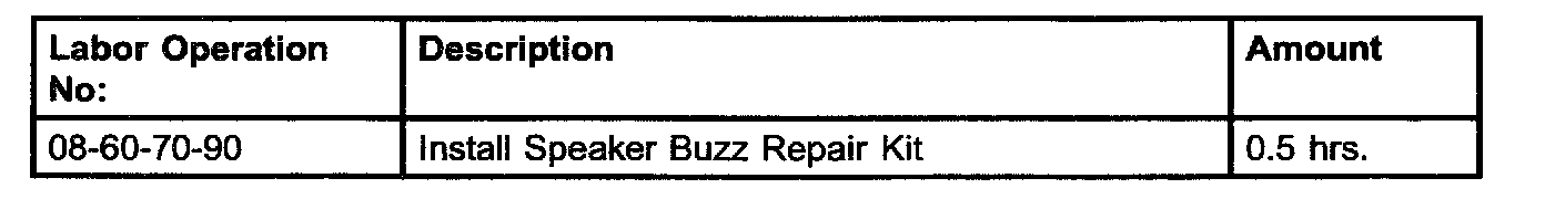 Play the audio system at a high volume and full bass setting, if a buzz/rattle noise is heard, perform the Repair Procedure.