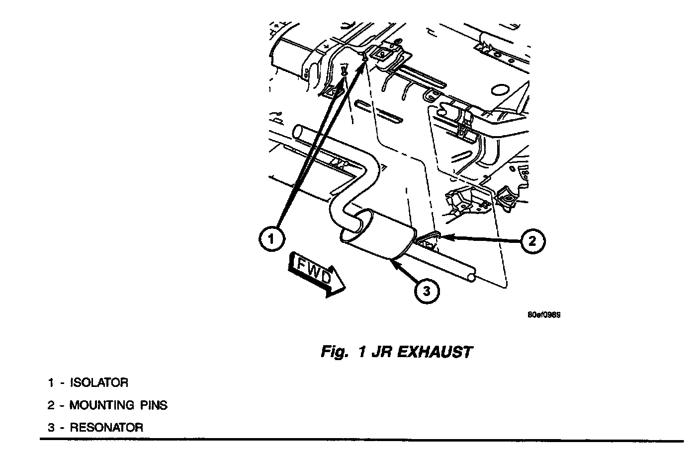 3. Pry the exhaust center isolator oft its mounting pins to remove. Discard the old isolator.