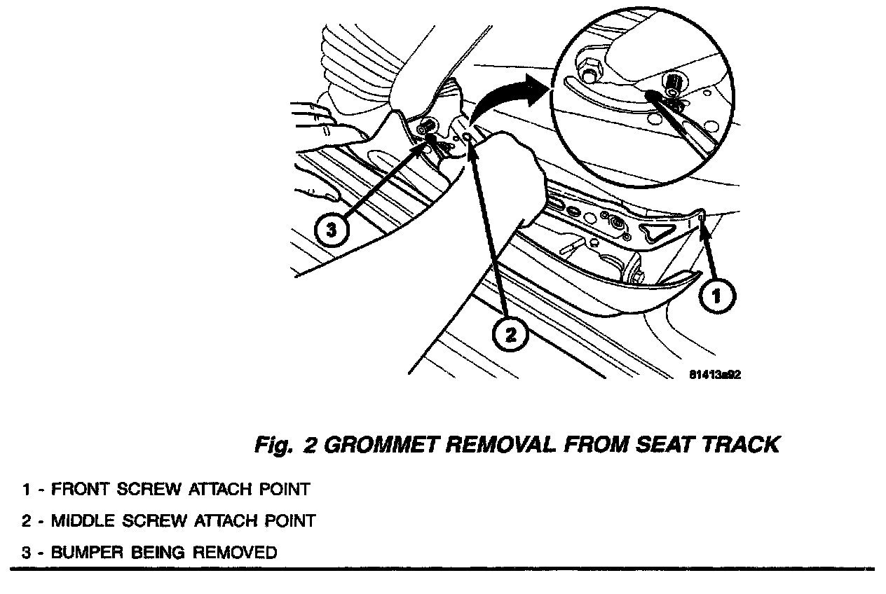 8. Remove the rubber bumper located in the curved slot of the seat frame by pulling it out with needle nose pliers and discard it, (Fig. 2).