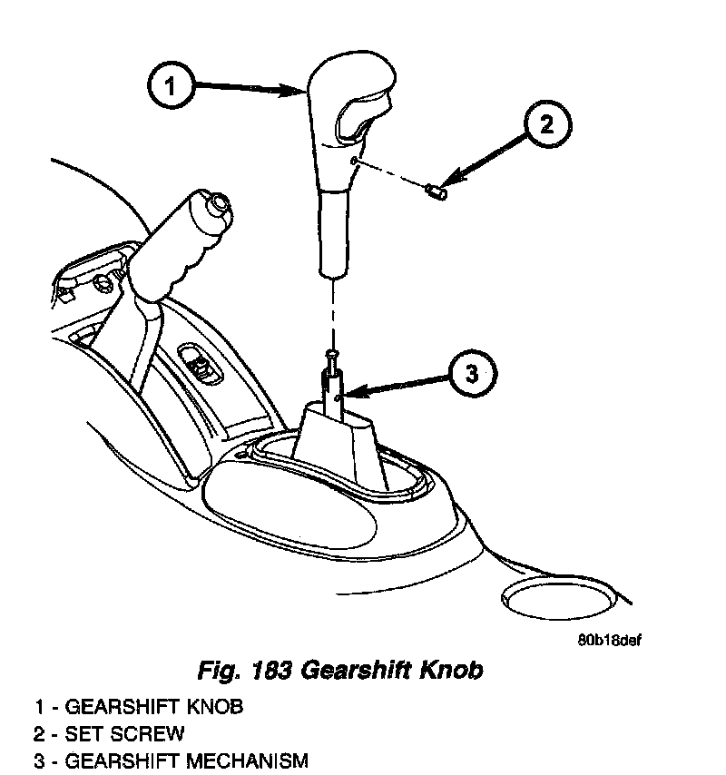 6. Remove the gearshift knob set screw and knob (Fig. 183).