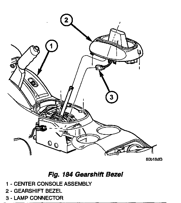 7. Remove gearshift bezel (Fig. 184). Disconnect range indicator lamp connector.